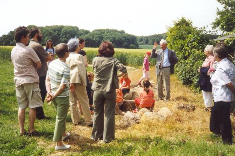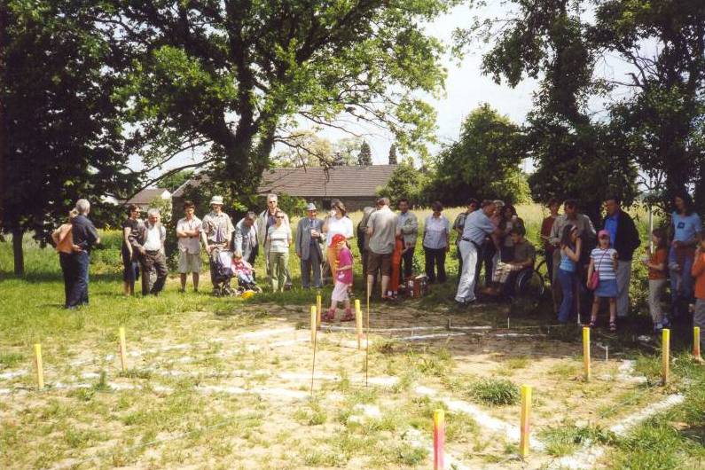 Das Brunnenfest am Pfingstsonntag hat eine sehr lange Tradition in unserem Ort. Und Tradition war in diesem Jahr das besondere Stichwort und Programm in diesem Jahr. Horst Wolfgarten, Leiter der Arbeitsgruppe "Denkmalpflege" des Bürgervereins führte interessierte Besucher nach einem kurzen Spaziergang zur früheren Ausgrabungsstätte der alten Saalkirche und informierte über die Geschichte und die geplanten Maßnahmen.