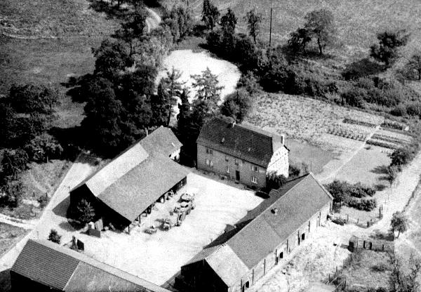 Das Wohnhaus, welches im Krieg stark beschädigt wurde, besteht im Erdgeschoss aus breiten Bruchsteinmauern. Der Bereich des ersten Geschosses besteht aus Fachwerk, welches aber in Folge der Kriegsbeschädigung mit grauen Faserplatten verkleidet wurde. An der Stelle der jetzigen Maschinenhalle hat früher eine Fachwerkscheune gestanden, die aber nach einem Brand abgerissen werden mußte.