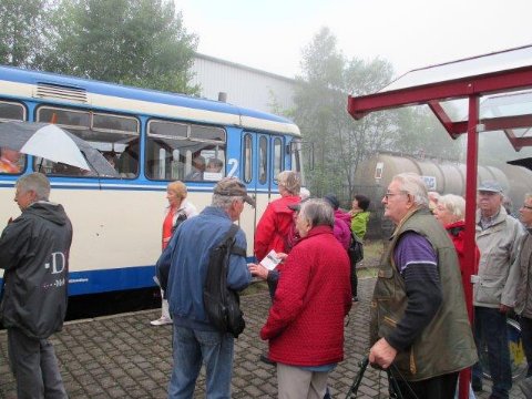 Unsere diesjährige Familienfahrt führte uns zunächst per Bus nach Kalenborn. Hier mussten wir im Regen wartend feststellen, dass der Rote Brummer, der Schienenbus, der uns zum Bahnsteig Alte Brauerei bringen sollte, schlichtweg vom Veranstalter vergessen wurde. Somit mussten wir doch noch einige Zeit auf das Ersatzfahrzeug warten.