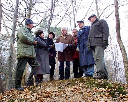 Forschungsausflug: Die Arbeitsgruppe Denkmalpflege besichtigt den vermeintlichen "Feldherrnhügel". Foto: Max Malsch