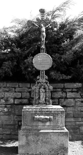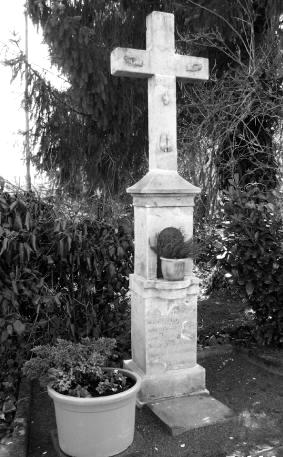 Ca. 3 m hohes Gliederkreuz, hochrechteckiger Sockel mit Inschrift und