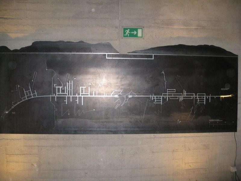 Wandtafel mit Darstellung des Bunker-Grundrisses.