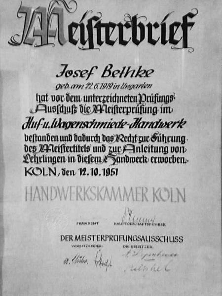 Lehre als Huf- und Wagenschmied bei der Firma Heinrich Franken in Siegburg.