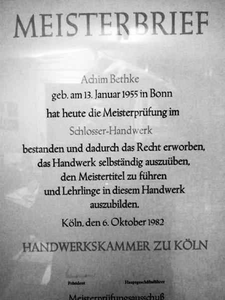 Namen mit. Geboren in Bonn, gelernter Schmied, Schlossermeister und Chef