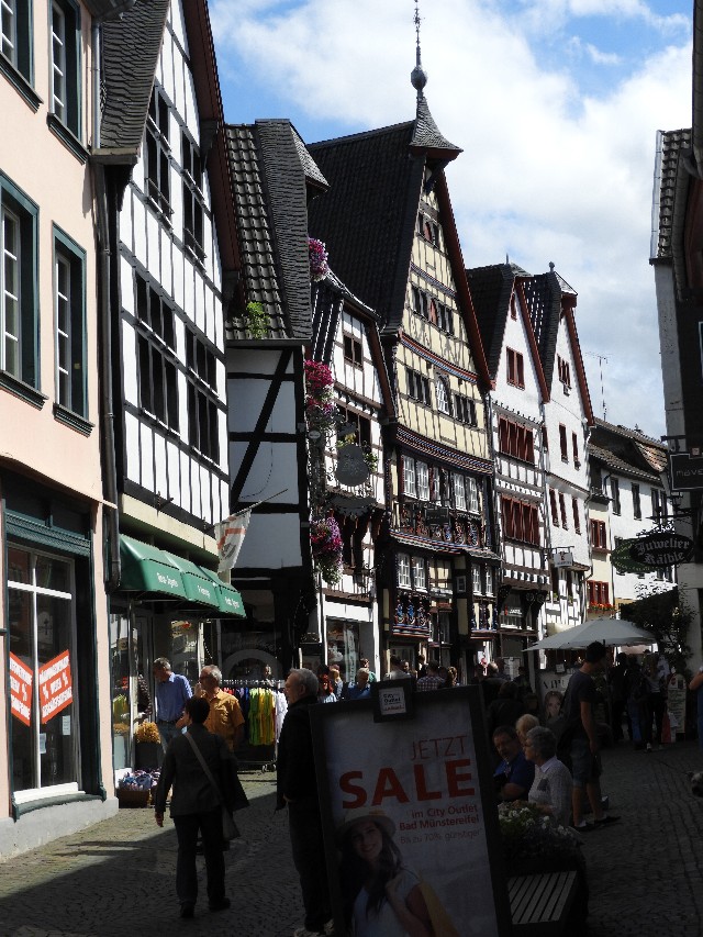 Nach der schweren Kost des Diavortrages ging es mit dem Bus weiter nach Bad Münstereifel, zum Mittagessen in der Gaststätte In der Höll. Dort servierte man uns ein gutes Mittagsmal, jedenfalls waren alle pappsatt, als sie sich anschließend auf einen Spaziergang durch die Altstadt von Bad-Münstereifel machten und die zahlreichen Outletgeschäfte aufgesucht haben.