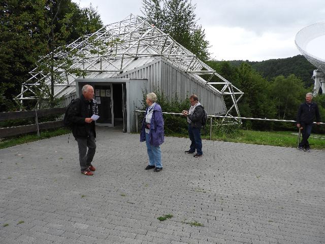 Unsere diesjährige Familienfahrt führte uns zunächst per Bus zum Radioteleskop Effelsberg. Schon bei der Anreise musste unser Busfahrer Theo Braun sein ganzes fahrerisches Können zeigen, denn die ausgewählte Route enthielt unter anderem eine enge und serpentinenartige Strecke, die mit einem Gelenkbus nur schwierig zu bewältigen war. Nicht umsonst hatte Theo leichte Schweißperlen auf der Stirn. Alle sind aber letztendlich wohlbehalten am Radioteleskop angekommen. Dort erwartete uns ein beeindruckendes Bild von der Anlage und ein Diavortrag mit interessanten Informationen.